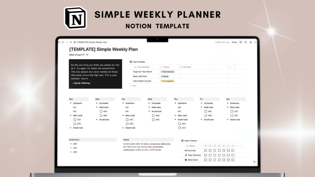 Start your journey towards better productivity today with the Simple Weekly Plan Notion template!